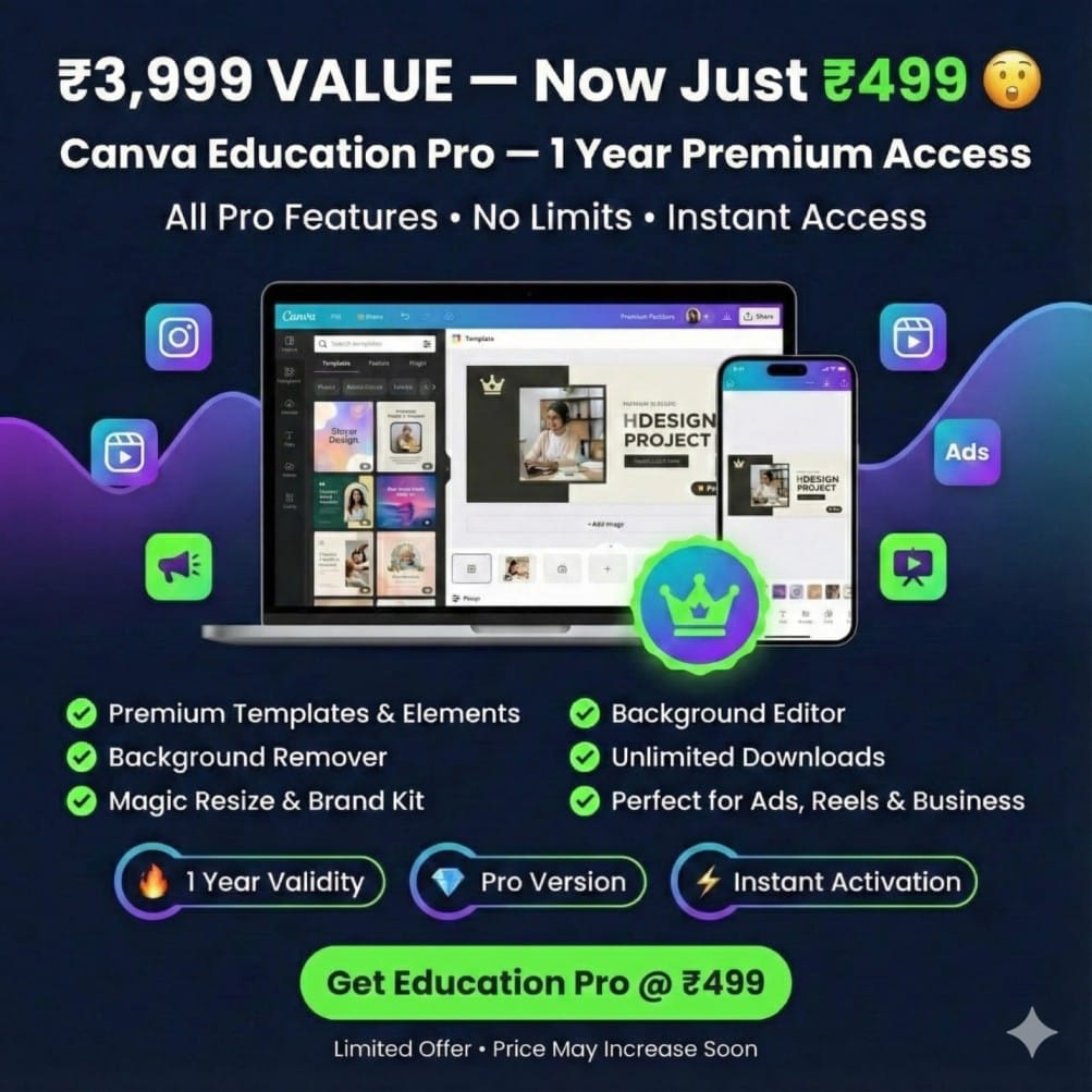 📍 Targeted for Sales (India): #CanvaIndia #CheapCanva #SoftwareDeals #SmallBusinessIndia #FreelancerIndia #DigitalIndia #OfferAlert #LimitedTimeDeal #CanvaPremium #DesignTools